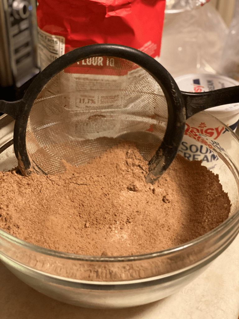 - 1 1/4 of unsweetened cocoa powder plus a little extra reserved ( hang on for that part)