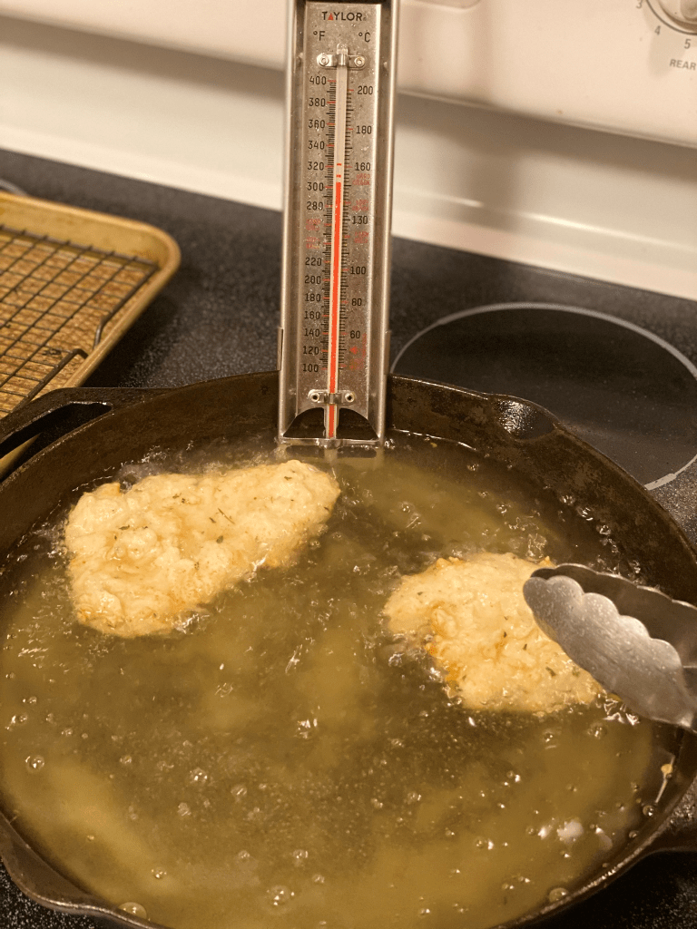 The temperature of the oil will drop as you first add chicken but watch and make sure you adjust the heat as needed to not let it go to low.